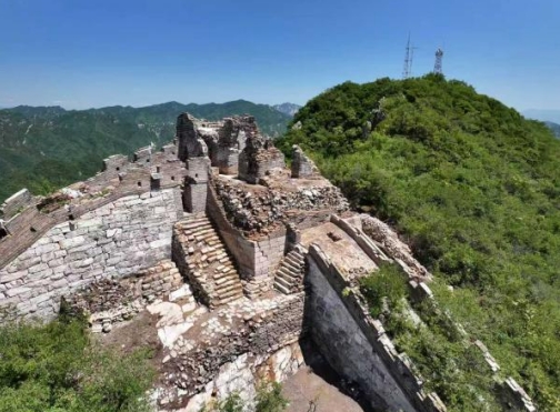 箭扣长城东段(117号敌台-122号敌台及117号——122号敌台间边墙)保护修缮项目位于北京市怀柔区雁栖镇西栅子村南山脊上,本次修缮段东起“牛犄角边”山顶的117号敌台,逶迤向西,至“正北楼”(122号敌台)止,包括117、118、119、120、121号敌台5座以及敌台间长城墙体。