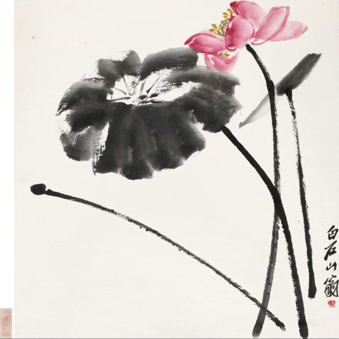 齐白石(1864-1957)荷花设色纸本立轴67 × 64 cm