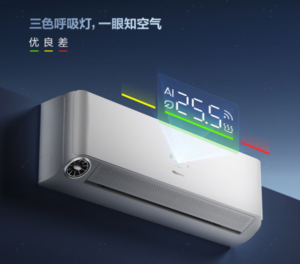 在行业转型的关键节点,各大企业均在强化核心优势以抢占市场先机。海信精准洞察用户对健康空气的核心诉求,凭借多年技术深耕,走出了一条聚焦新风赛道的差异化突围之路。2008年,海信便率先推出中国首台新风空调,开启了空调行业“新风时代”的探索;如今,通过持续的产品更新与技术优化,海信不仅让“好空调”向“好空气”的产业转型落地生根,更以具象化的用户体验和敏锐的市场触角,为行业发展提供了差异化的创新范本。例如针对睡眠环境的海信深睡宝X5系列首创搭载CO₂传感器,通过“绿、黄、红”三色呼吸灯,将无形的空气质量转化为直观的视觉信号;当监测到CO₂浓度超标,空调自动启动新风,将浓度稳定在优质睡眠的黄金区间。