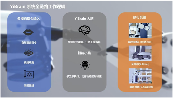 基于YiBrain系统,“鸿钧”能够理解如“将A模块与B底板组装”这类宏观指令,并自动拆解为可执行的子任务序列。当生产中出现物料型号变更等突发情况时,YiBrain可动态调整后续动作,无需停线重调,极大提升了产线应对变化的弹性。