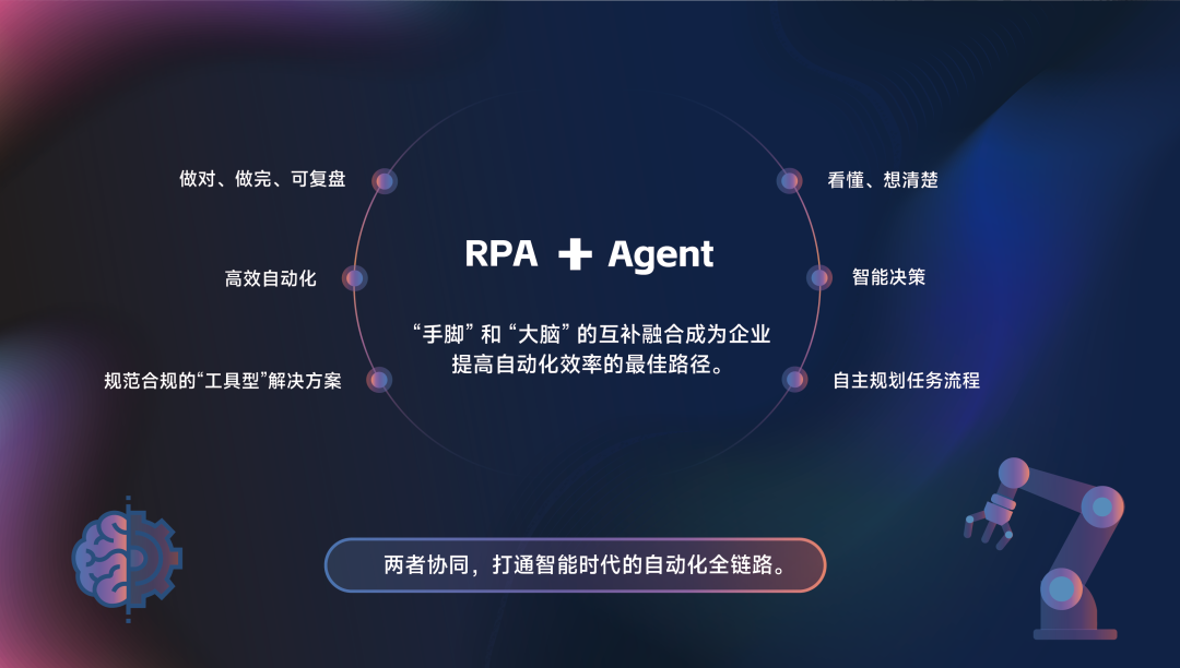 这种“Agent 做决策、RPA 做执行”的协同模式,正在实现企业向业务智能化方向全面进阶。