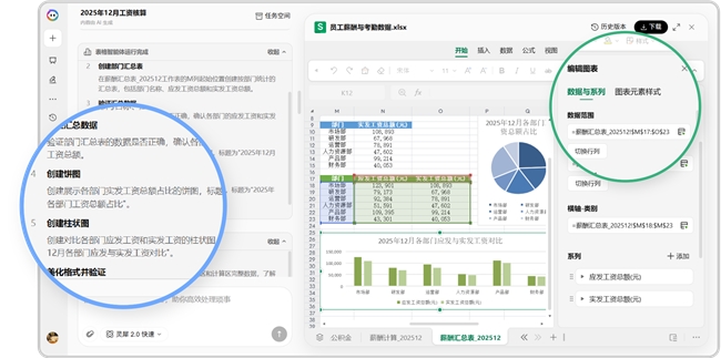 此次升级中,WPS灵犀的表格智能体表现格外亮眼。区别于行业内多数AI数据分析产品依赖Python交付不可验证的数字结果,WPS灵犀表格智能体深度融合表格原生能力,涵盖函数公式运算、图表生成、条件格式等核心功能,实现AI与用户的协同完成数据分析。