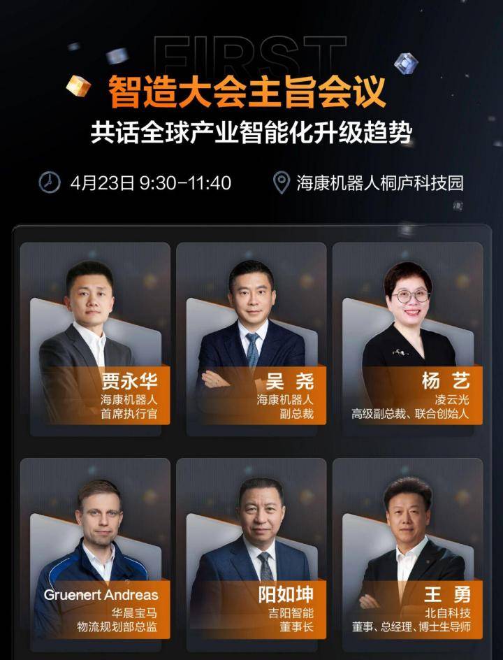4月23日是大会的“主旨会议”环节。届时,海康机器人首席执行官贾永华、副总裁吴尧,机器视觉产业联盟副理事长、凌云光高级副总裁兼联合创始人杨艺,华晨宝马物流规划部总监Gruenert Andreas,吉阳智能董事长阳如坤,北自科技董事、总经理、博士生导师王勇等行业大咖齐聚一堂。他们将从各自领域出发,分享前瞻洞察,共话全球产业智能化升级趋势。