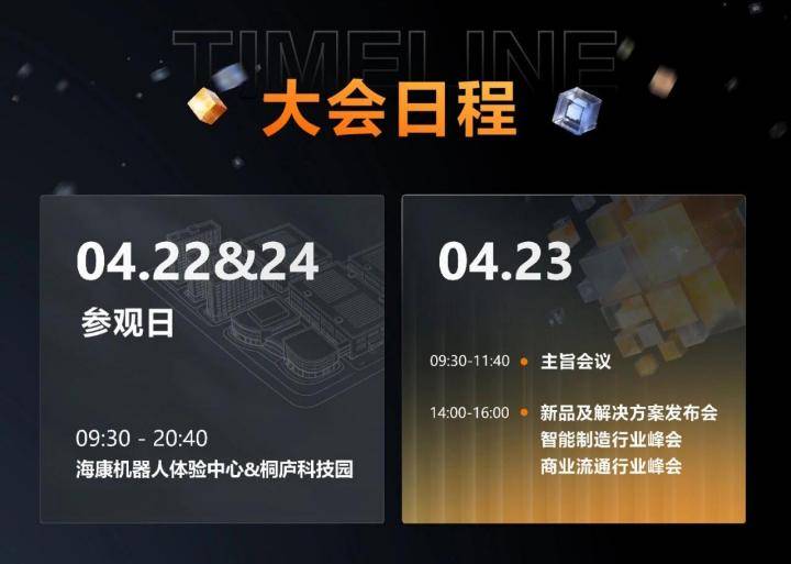 2026年4月22日至24日,海康机器人智造大会将于浙江杭州桐庐盛大启幕。本次大会将汇聚智能制造领域的一线管理者和产业链伙伴,共同探索行业“智造升维”的发展新路径。