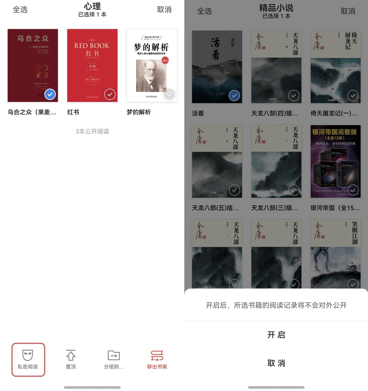很多人书架里收藏了几百本书,想找一本得翻半天,有些书还不想被别人看到阅读记录,这次更新一次性把这些问题都解决了:
