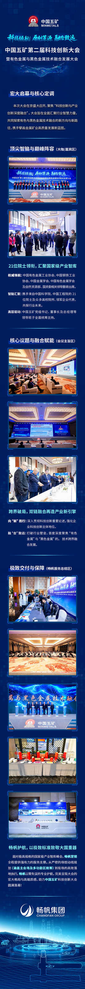 “中国五矿第二届科技创新大会暨有色金属与黑色金属技术融合发展大会”在京召开,21位两院院士及政企学界顶尖专家齐聚现场。畅帆作为项目服务供应商,圆满完成本次高规格峰会的策划与落地工作。面对极高的会务标准,畅帆围绕空间规划、视觉呈现及现场统筹等环节,以零失误的专业护航全力保障项目平稳运行。极致交付,完美呈现国家级产业智库峰会的高端质感!