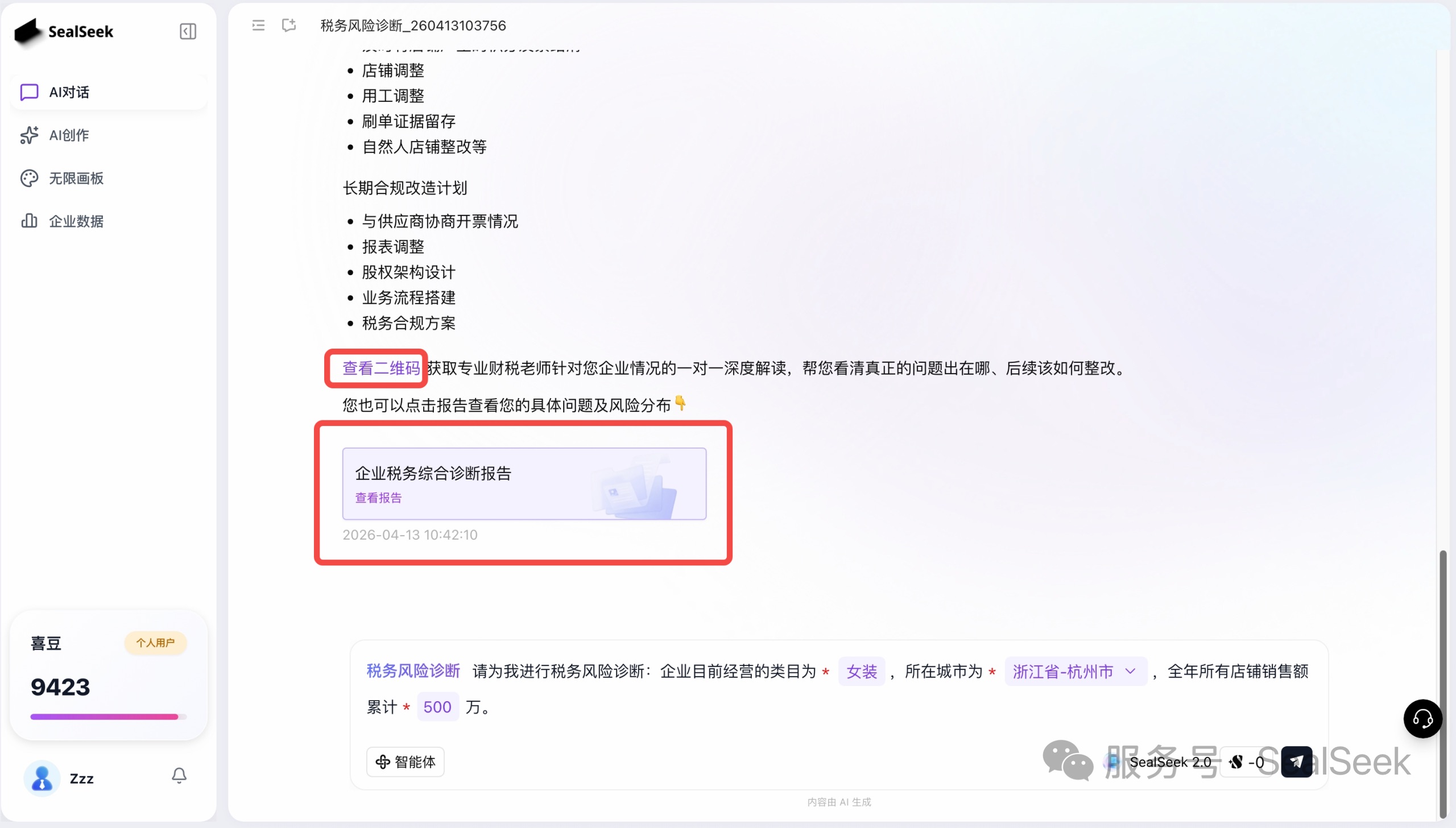 玺承SealSeek税务风险诊断智能体以AI技术实现降本、避险、增值三重价值: