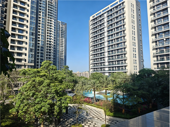 住宅式公寓,户型及朝向宜居:全部房源九成采用2梯5户低密度设计,八成户型为3室2厅2卫2阳台,格局阔绰;约八成房源为南面朝向,通风采光俱佳,有效应对岭南潮湿气候,不惧回南天。