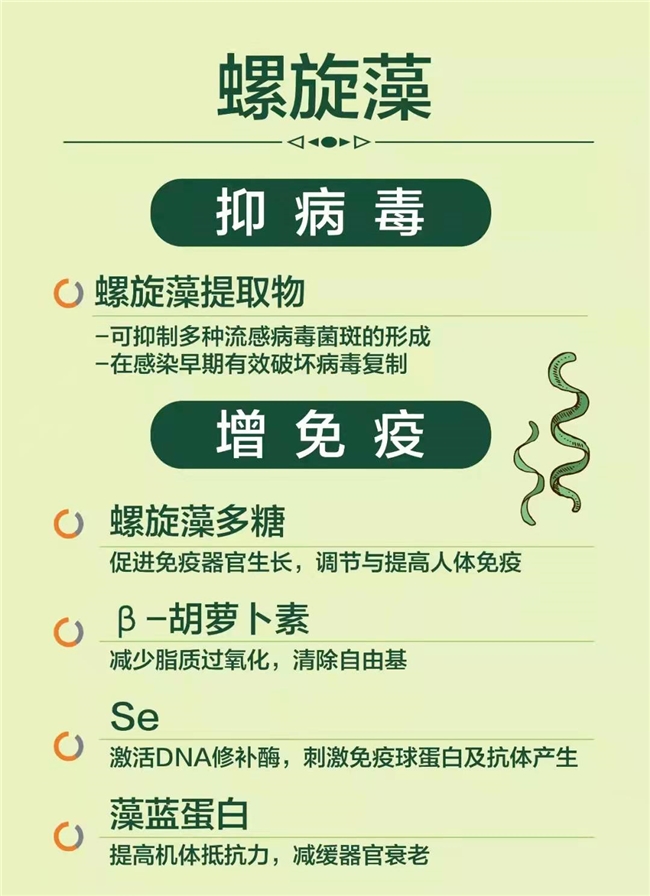 螺旋藻的抗炎作用源于其丰富的活性成分,主要包括藻多糖、藻蓝蛋白、γ-亚麻酸(GLA)及β-胡萝卜素、维生素等多种抗氧化物质,这些成分通过不同途径协同作用,抑制炎症反应,保护细胞免受损伤,越来越多的研究表明,螺旋藻在多种炎症相关疾病中具有较好的应用潜力。其中,螺旋藻的藻多糖能抑制促炎因子(如TNF-α、IL-6)的表达,同时增强抗炎因子(如IL-10)的活性,从而平衡免疫系统,减少过度炎症反应。