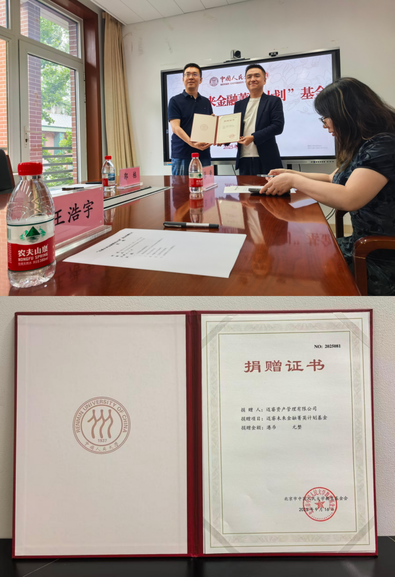 9月16日上午,中国人民大学“迈睿未来金融菁英计划”基金捐赠仪式在人大数学学院会议室举行。