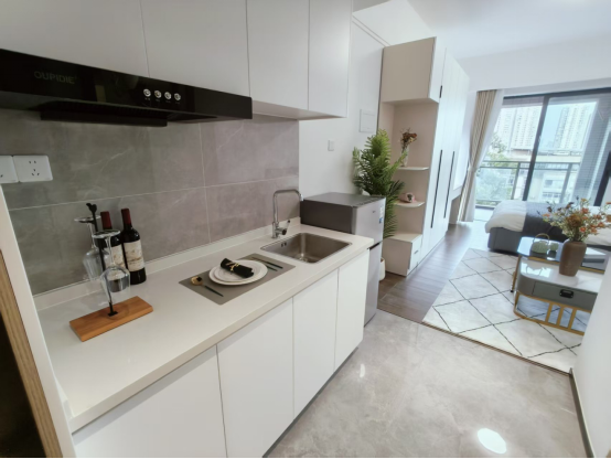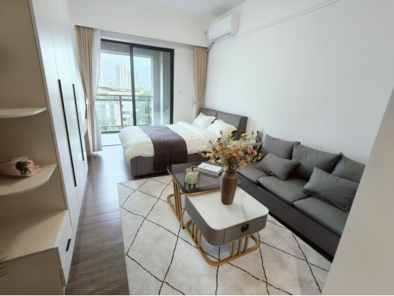 推开房门,3.2米的层高和明亮的阳光大窗瞬间带来开阔感。房间虽不大,但设计巧妙,功能齐全:独立厨房让你能偶尔下厨慰劳自己;五星级床垫保证每一晚的优质睡眠;封闭式阳台搭配洗衣机,解决了晾晒难题;甚至还有一个精心布置的小书桌或沙发区,作为专属的“精神角落”。