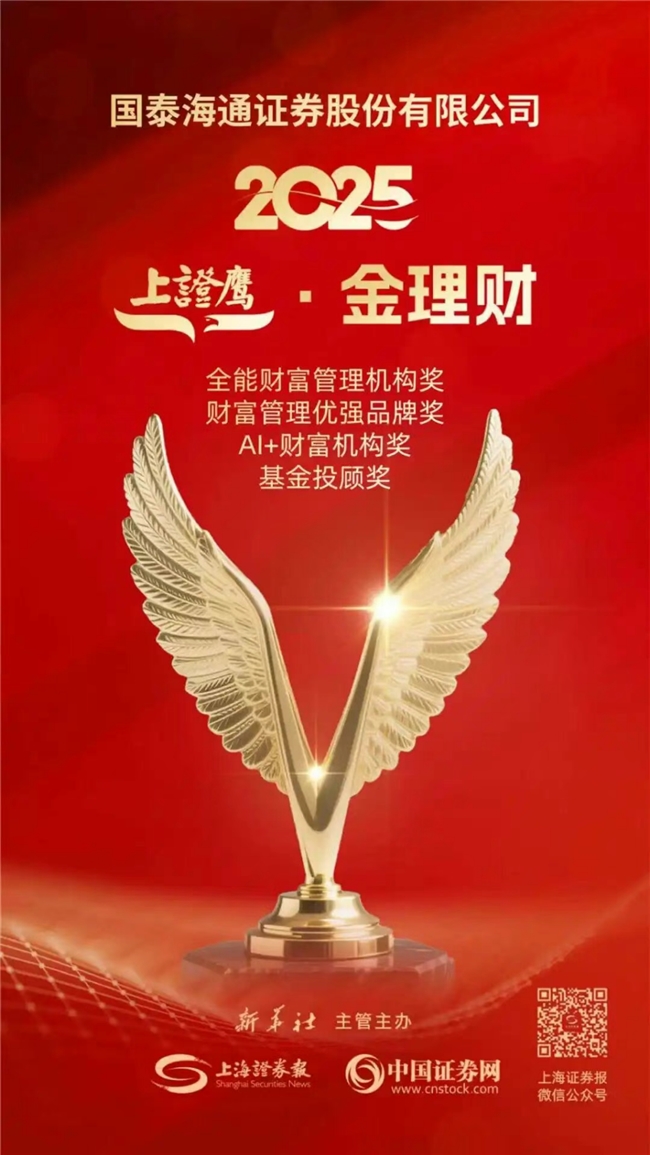 12月12日,由上海证券报主办的2025“上证鹰·金理财财富管理评选”结果正式揭晓,国泰海通凭借在财富管理领域的卓越表现与创新实践,荣膺“全能财富管理机构奖”“财富管理优强品牌奖”“AI+财富机构奖”“基金投顾奖”四项大奖。
