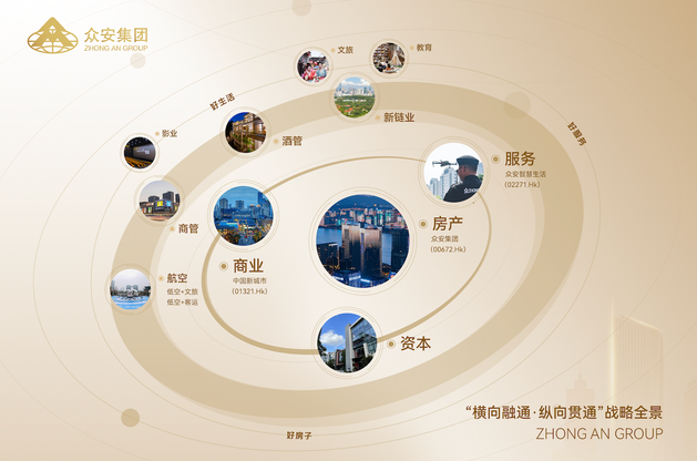 众安最具差异化的优势,在于其“横向融通 纵向贯通”的产业生态。房产、商业、服务、资本四大板块,不是独立运营的子公司,而是在项目层面深度咬合的齿轮。