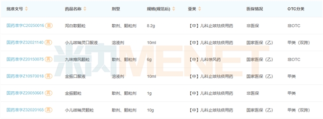康缘药业拥有生产批文的儿科中成药