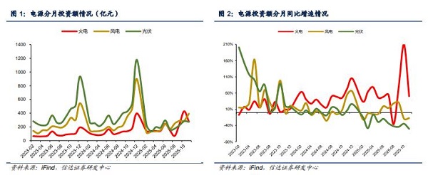 “十四五”后半程,电源投资结构分化明显。新能源领域,2023-2024年风光投资额虽增但分月增速下滑,2025年“136”号文加剧项目收益不确定性,风光投资增速同比下行,风电表现略优于光伏,整体热度减退。火电投资持续高增,投建潮推进,信达证券预测2026年火电投资达峰。