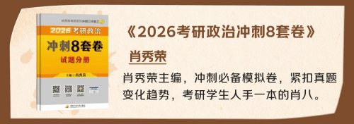 考研学生基本都会购买的《2026考研政治冲刺8套卷》已经上线,由肖秀荣主编,冲刺必备模拟试卷,紧扣真题变化趋势,适合马上要考研的考生。